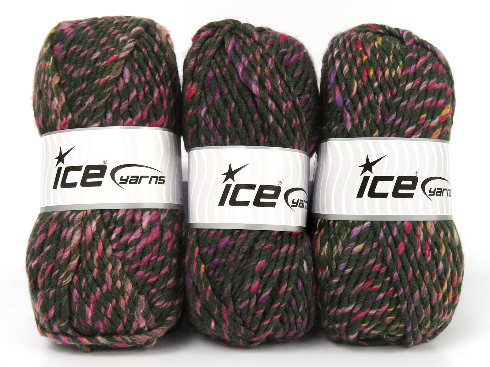 Lot of 3 x 115gr Skeins Ice Yarns BROOKLYN (10% Wool) Yarn Green Rainbow